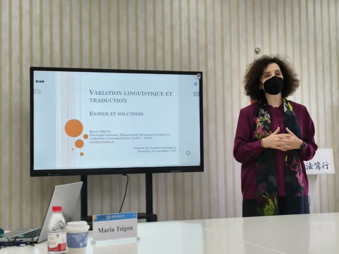 11月3日上午,希腊爱奥尼亚大学外语、翻译与口译系的Maria Tsigou教授受邀访问上海外国语大学法语系,带来题为“语言变体与翻译:问题与对策”的讲座。她从语言学与翻译学的双重视角,深入探讨了语言变体在翻译中的地位、难点与应对策略。