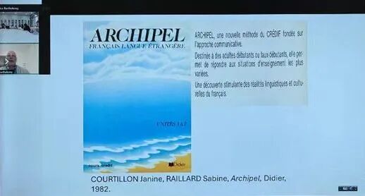 20 世纪 80 年代,交际教学法正式兴起。Archipel(《群岛》)教材以言语行为、交际场景为核心,是该方法的典型体现。Barthélémy 教授特别指出,尽管教材形式不断更新,但其核心结构——通过情境组织语言知识与文化内容——与中世纪语法书中的对话式编排其实具有连续性。真正意义上的“突破性方法”在外语教学史上并不多见。