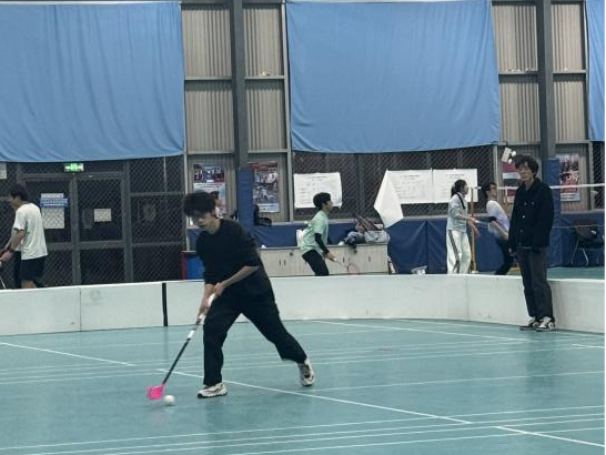 在旱地冰球赛场上,我系队员凭借默契的传接配合、精巧的控球技术与敏捷的战术跑动,牢牢掌控比赛节奏,最终以压倒性优势勇夺冠军。