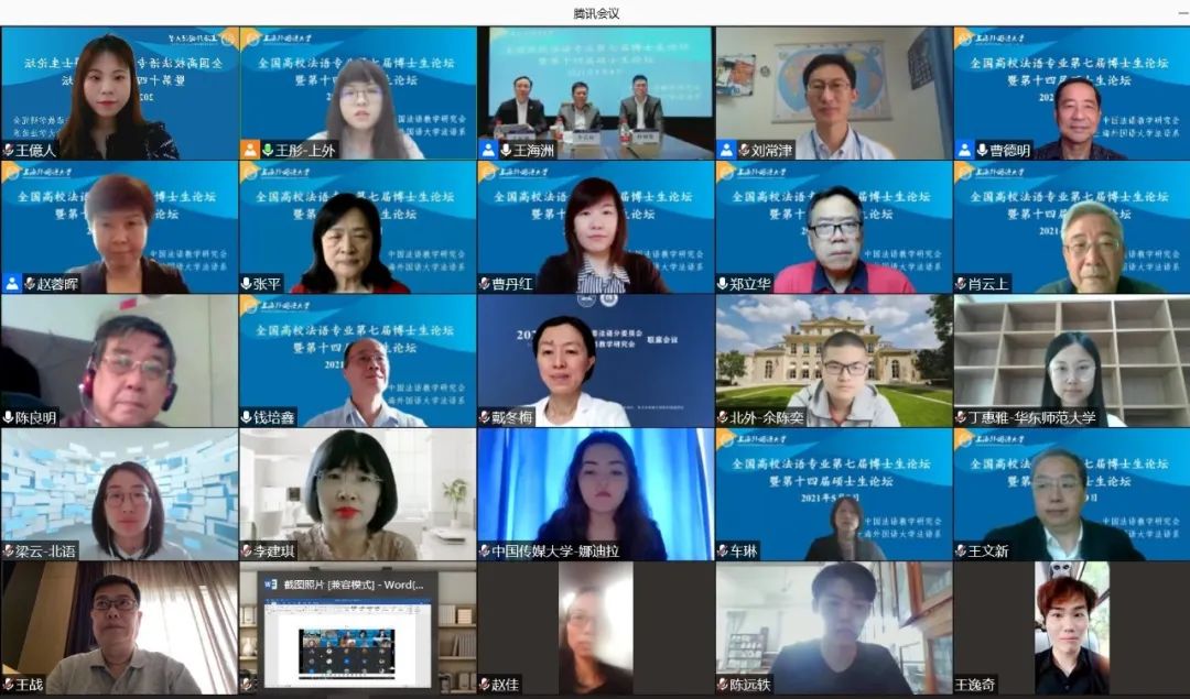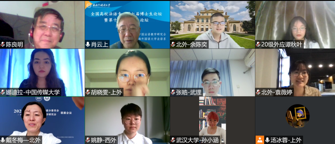2021年5月9日,由中国法语教学研究会和上海外国语大学法语系联合举办的全国高校法语专业第七届博士生论坛暨第十四届硕士生论坛在线上顺利举行。上海外国语大学校长李岩松教授、中国法语教学研究会会长曹德明教授和上外研究生院院长赵蓉晖教授出席开幕式并致辞,上外法语系主任王海洲主持开幕式。