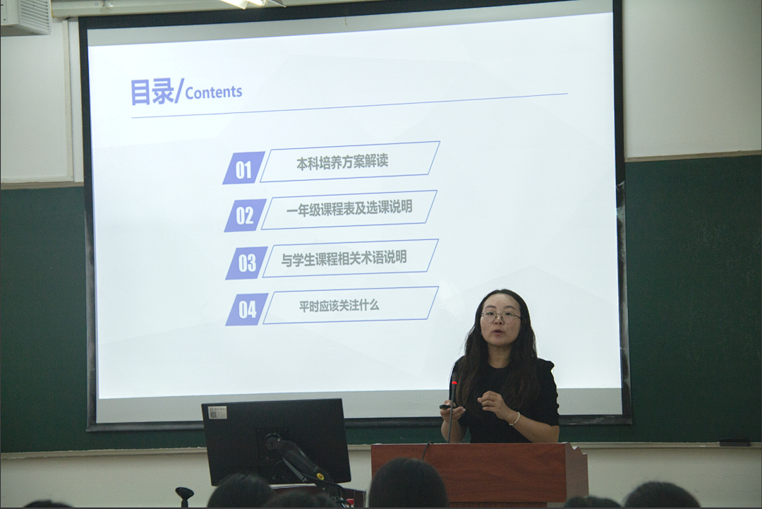 9月5日下午,系主任王海洲为新生解读培养方案,就专业学习和生涯规划提出宝贵建议。