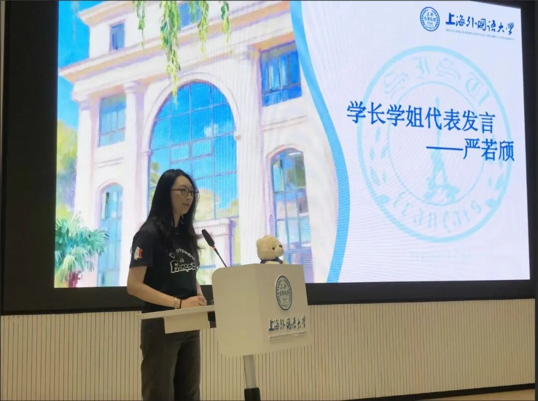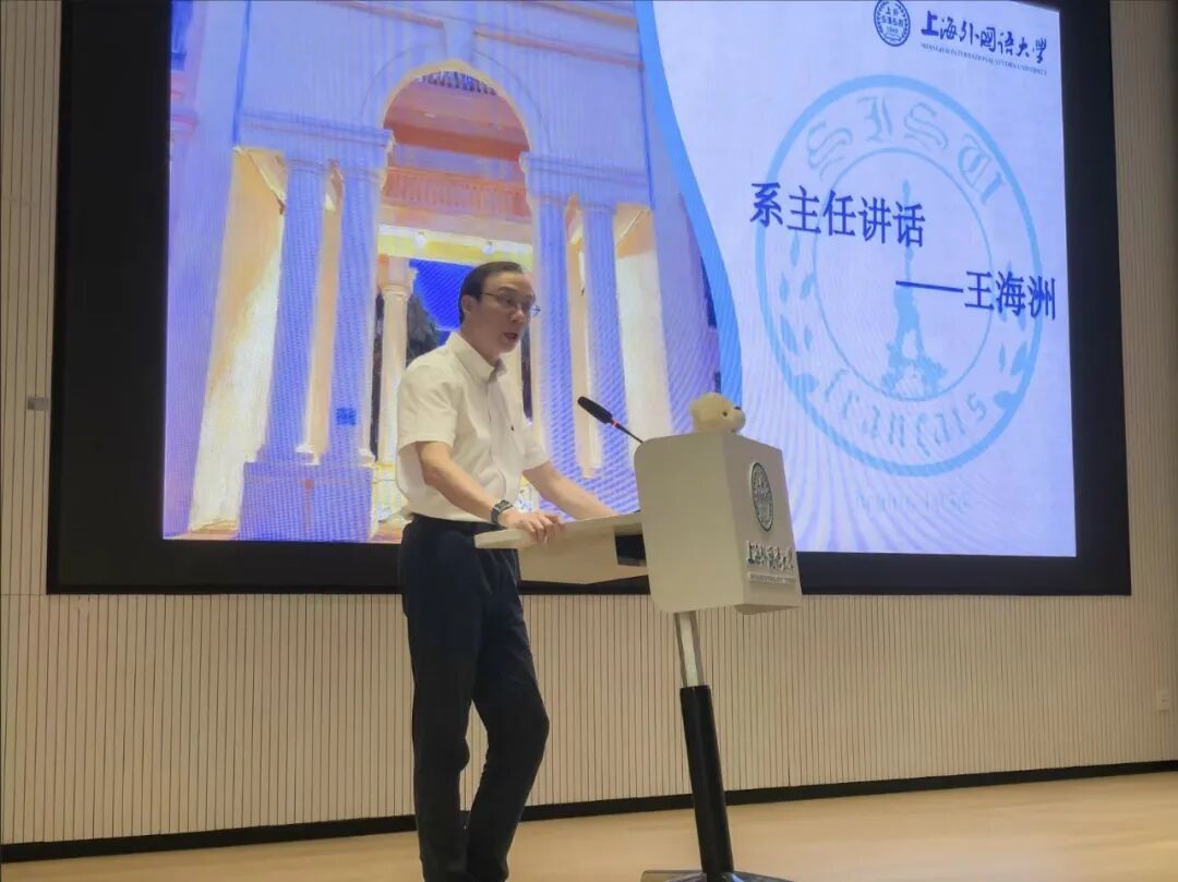 系主任王海洲在讲话中对新生们殷切寄语,老生代表严若颀为新生们指点迷津,本科新生代表胡馨月、研究生新生代表黄先洋的发言展现了他们作为新“上外法语人”的传承和担当。最后,本研新老生代表共同举行了“筑梦同行”结对仪式,共同奋进,努力拼搏,循梦致远。