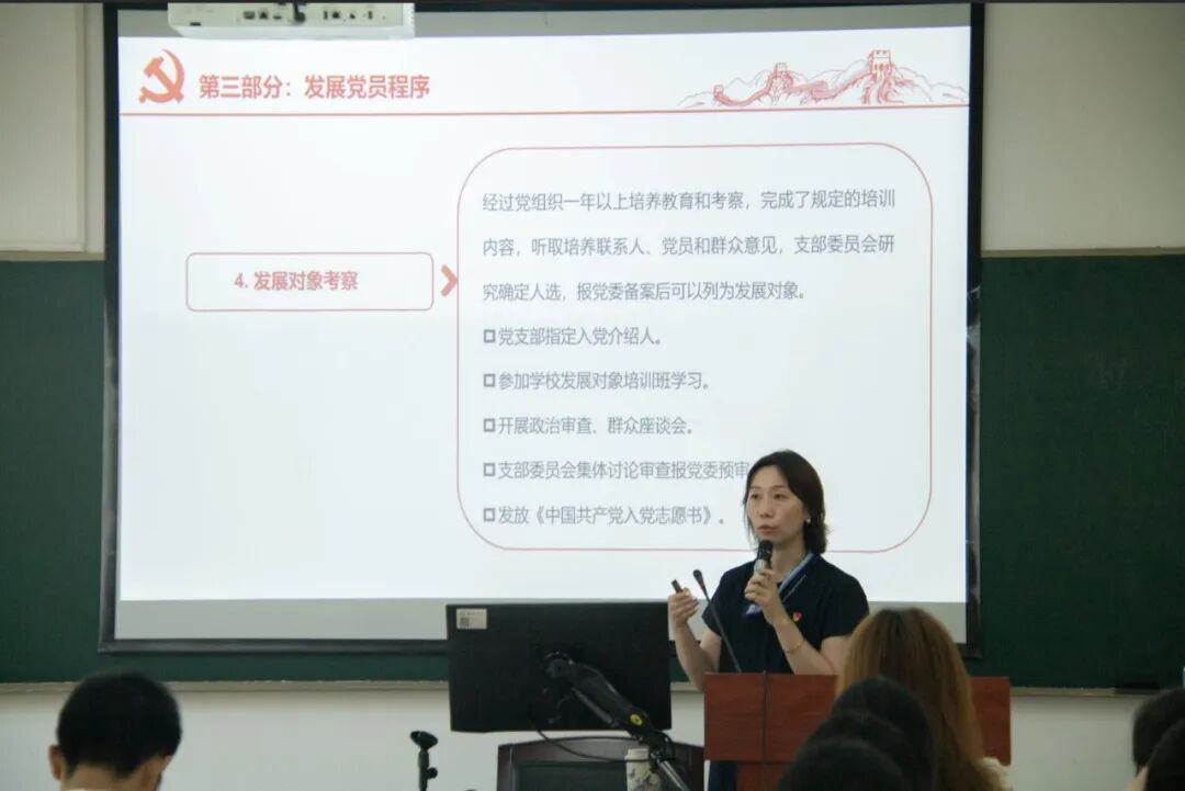 9月8日,法语系对新生进行了理想信念教育,组织员周莉针对新生入党流程及注意事项进行详细介绍,号召同学们积极向党团组织靠拢。